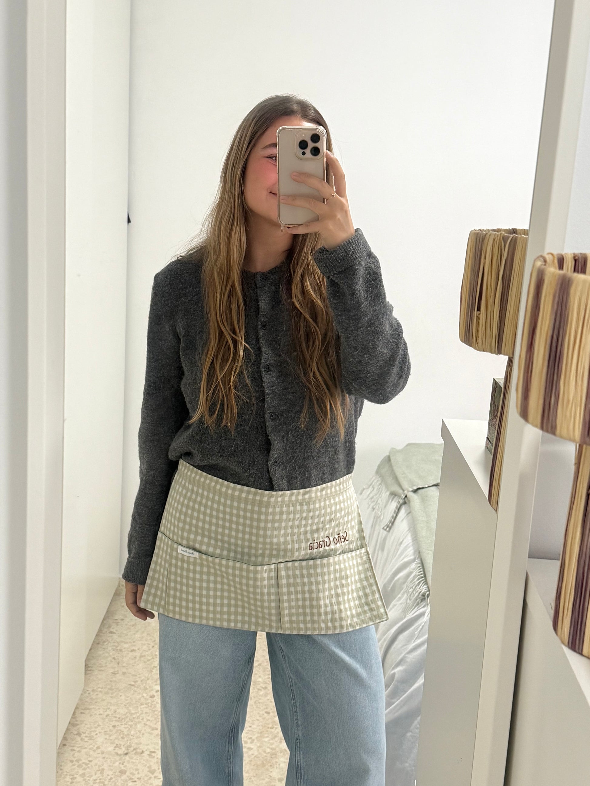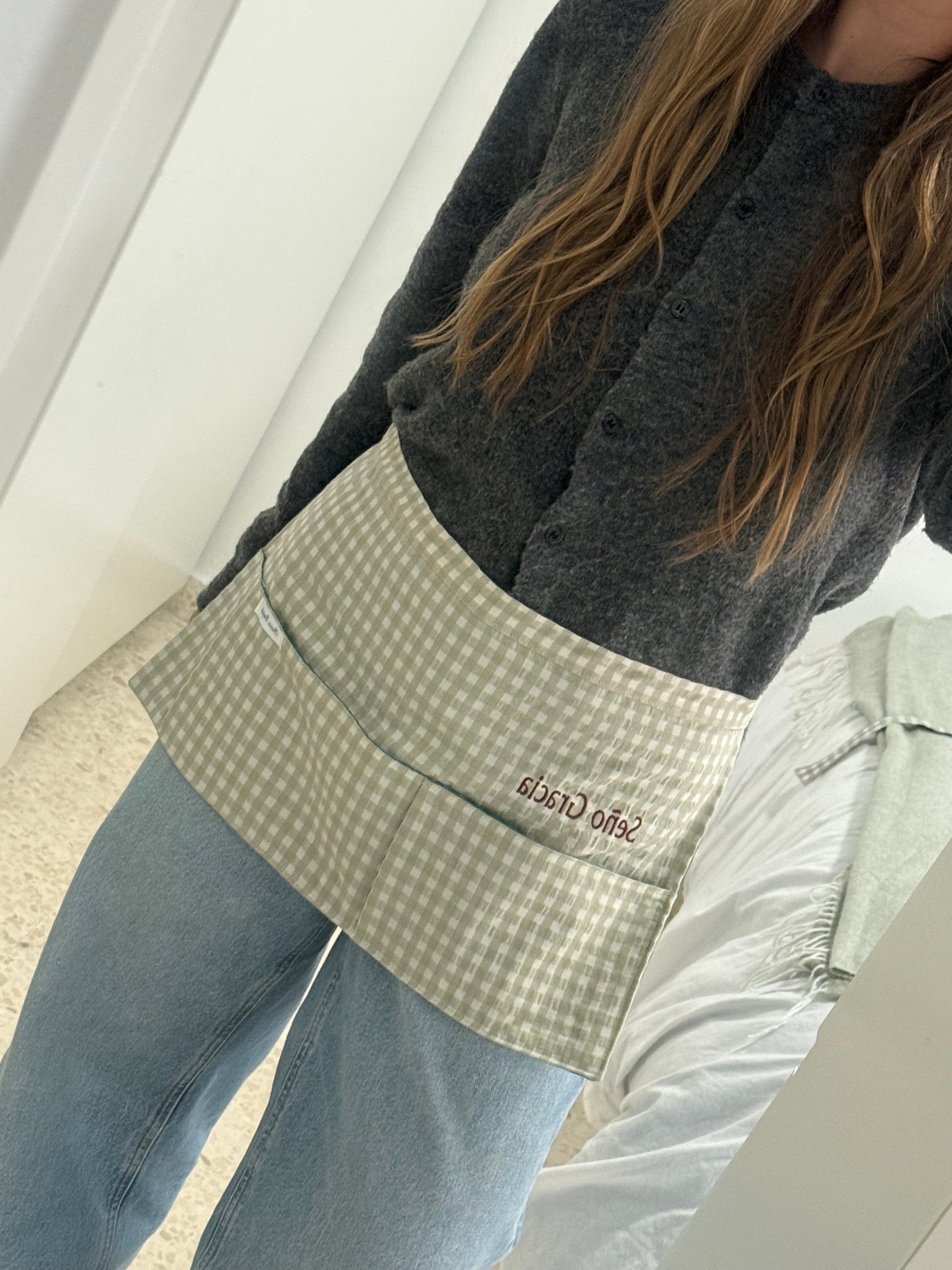 Mandil vichy verde clarito